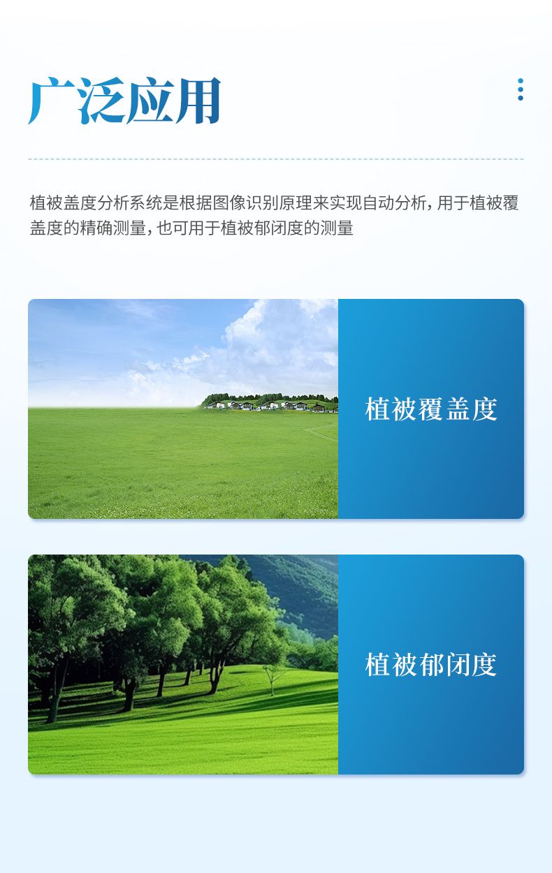 植被蓋度分析系統(tǒng)是根據(jù)圖像識別原理來實現(xiàn)自動分析,用于植被覆蓋度的精確測量,也可用于植被郁閉度的測量。