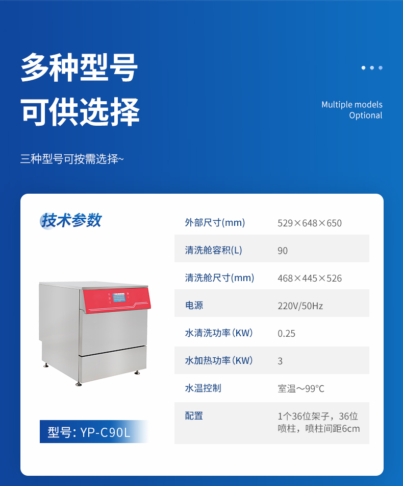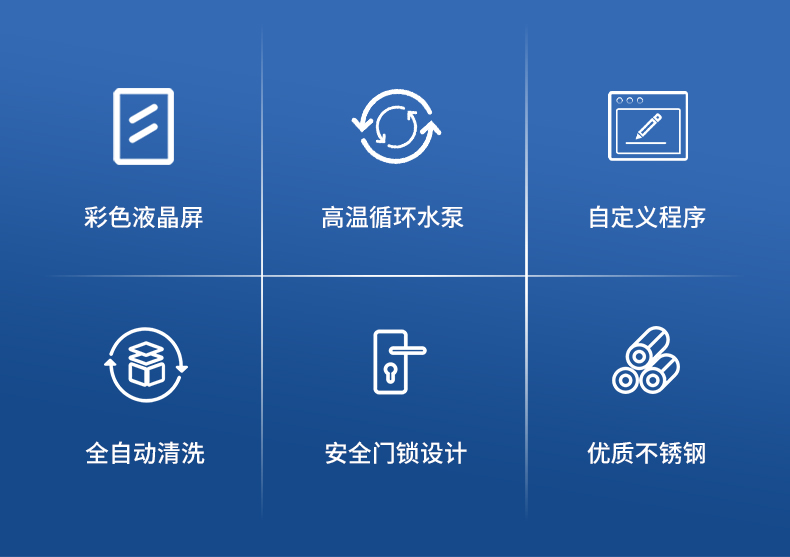 *3.3 控制系統有12個標準的清洗程序以及99個自定義清洗程序,可以針對不同的器皿以及要求來設定、調整清洗程序。