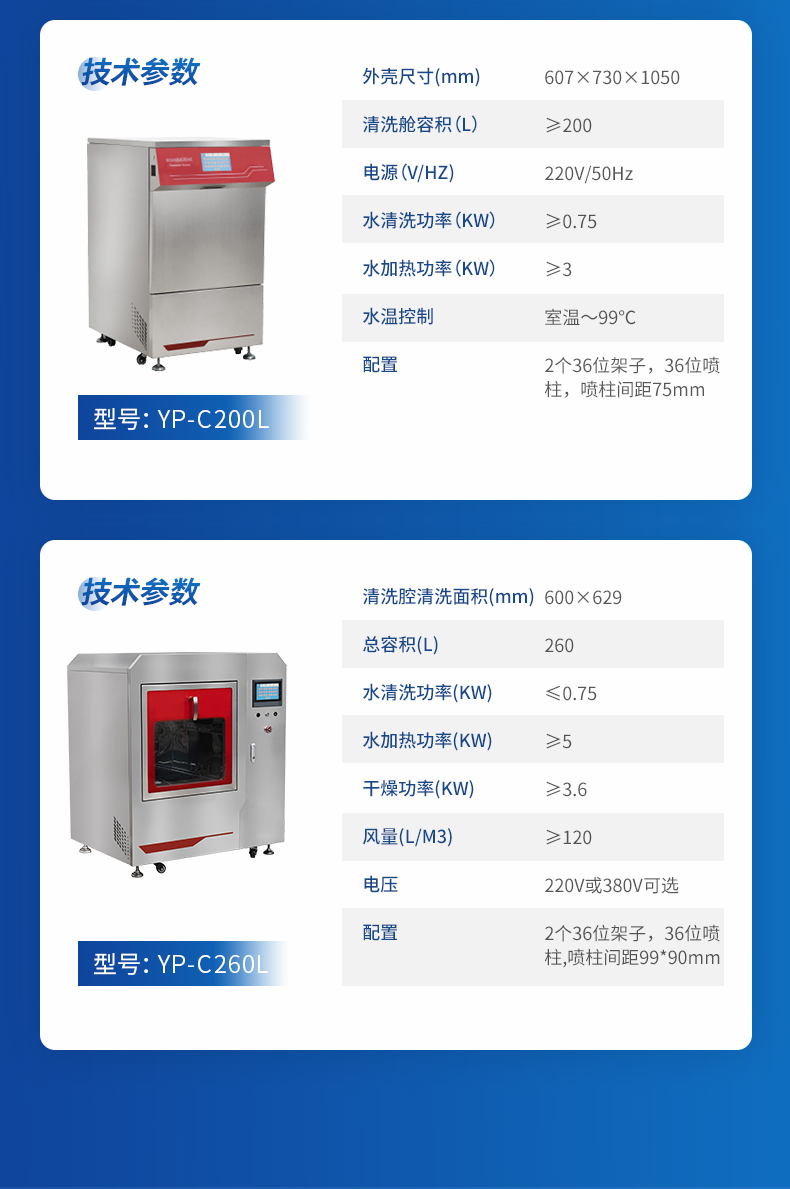 7.3水清洗功率≤0.75KW,水加熱功率≥5KW,加熱快,加熱時間短;干燥功率≥3.6KW,風量≥120L/M3;電壓220V或380V可選,水加熱功率可選。